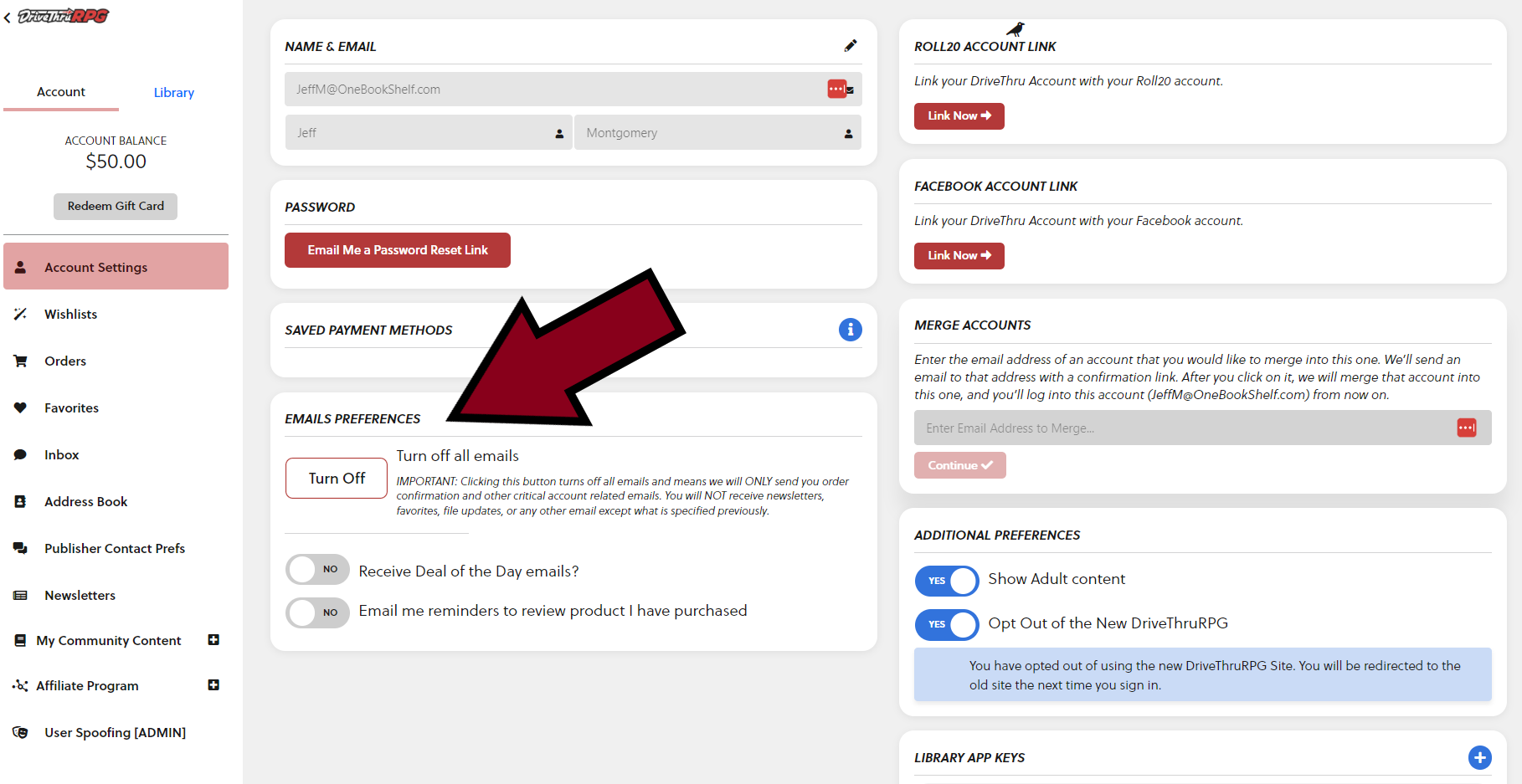 - Localize a secção Preferências de correio eletrónico na coluna central e defina as suas selecções para todas as mensagens de correio eletrónico, mensagens de correio eletrónico da oferta do dia e lembretes de análise de produtos.